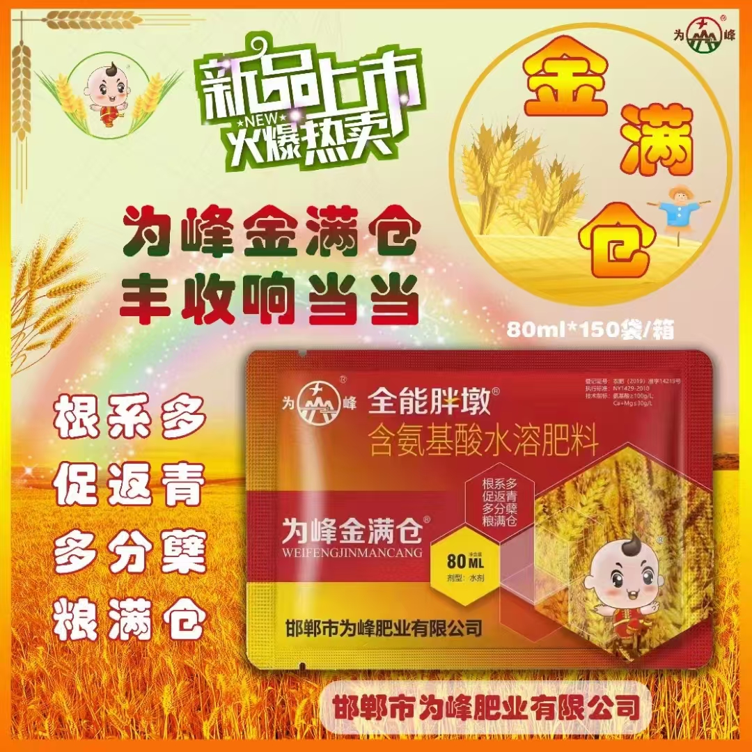 全能胖墩小麥金滿倉為峰肥業(yè)金滿倉小麥葉面肥2024-08-20返青快分蘗多根系發(fā)達提高抗逆性,抗寒抗旱莖桿粗壯、防病增產(chǎn)◎穗長、穗齊、籽粒飽滿小麥葉面肥麥黃金廠家為峰肥業(yè)麥黃金批發(fā)